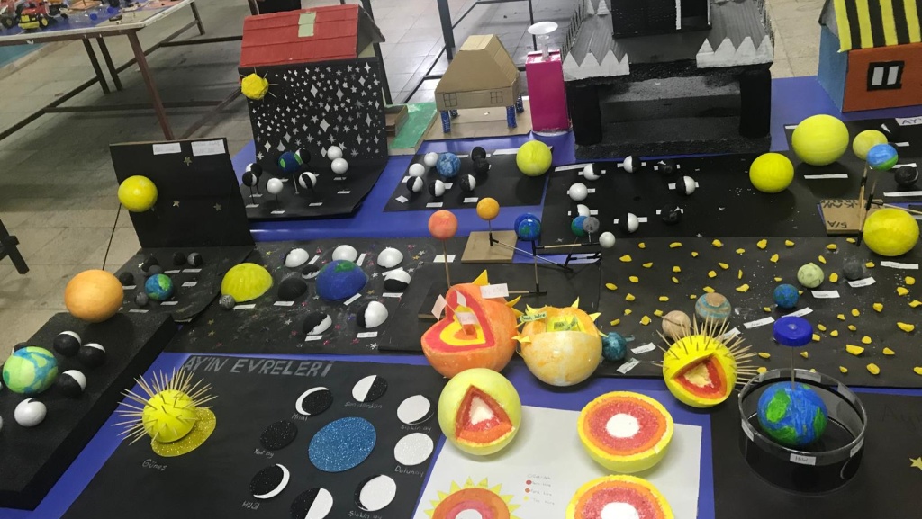 Öğrencilerimiz, Güneş Sistemi'nin etkileyici modellerinden Dünya'nın ve Ay'ın evrelerine dair maketlere, bitki ve hayvan hücrelerinin detaylı kesitlerine kadar fen bilimlerinin farklı alanlarında derinlemesine çalışmalar sergiledi. Sergide ayrıca, basit makinelerin çalışma prensiplerini gösteren vinç ve mancınık modelleri ile temel elektrik devreleri gibi teknoloji ve mühendislik alanındaki yaratıcı projeler de yer aldı.